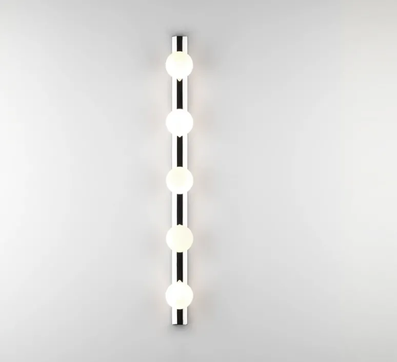 L’applique de salle de bain Cabaret 5 peut être posée à la verticale ou à l’horizontale. Elle mesure 70cm de long.