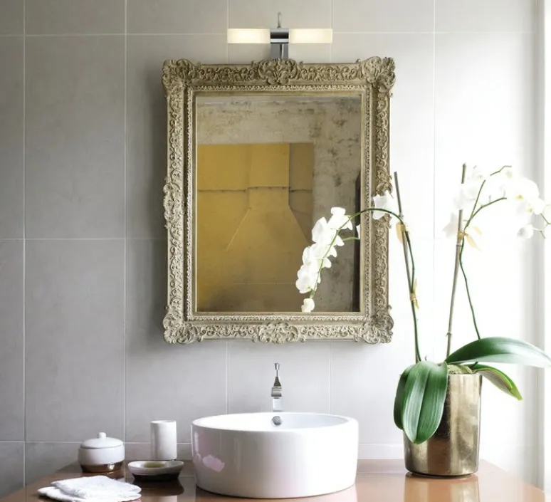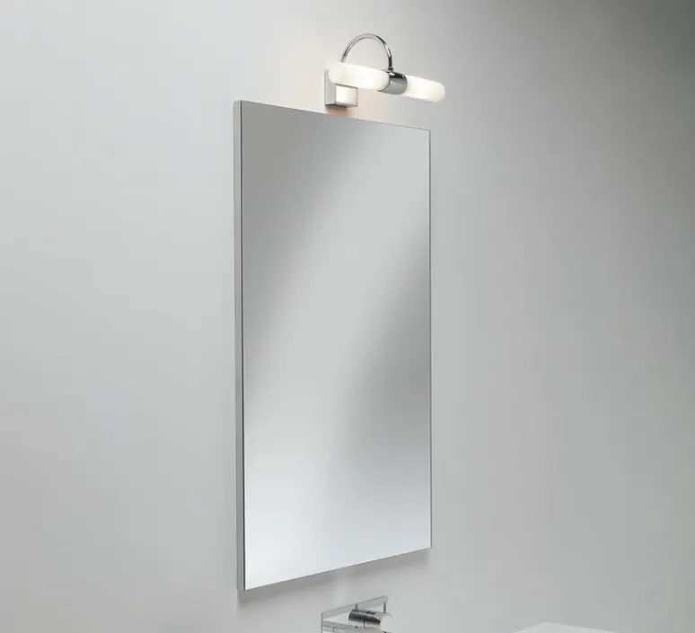 Pensée pour être installée au-dessus d’un miroir, cette applique diffuse une lumière douce et homogène idéale pour la salle de bains, les zones 2 et 3 (environnement humide). Sa finition chromée réfléchit la lumière ambiante, créant un joli effet lumineux quand elle est allumée.