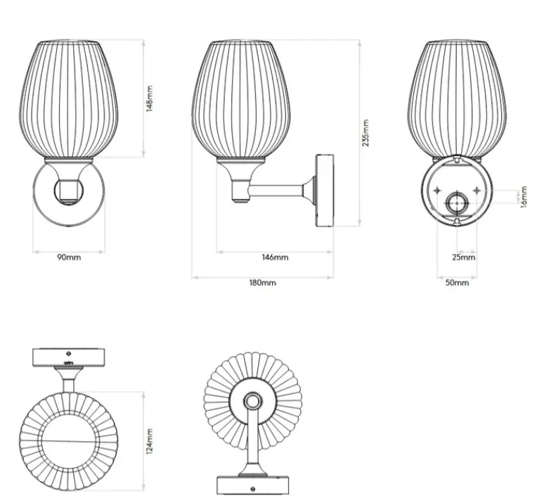 Cette applique mesure L12,4 cm x H23,5 cm, fonctionne avec une ampoule E14 (40W max, non incluse) et est livrée avec son abat-jour. L’éclairage est fixe, dimmable selon l’ampoule et l’installation choisies. Indice de protection IP44, sans driver requis.
