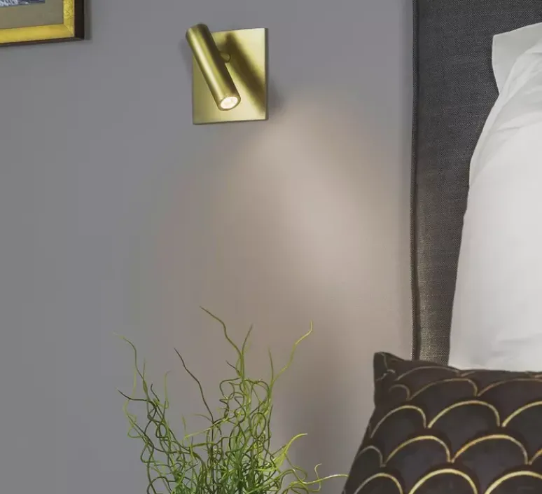 L’applique Enna Square switched, prend toute sa dimension dans une chambre en tête de lit. Ce tube lumineux en laiton et son interrupteur vous permette d’eclairer vos lecture du soir comme dans une chambre d’hôtel. La liseuse Enna Square est un éclairage directionnel, la tête de l’applique bouge selon votre besoin et son interrupteur intégrer offre un vrai confort.