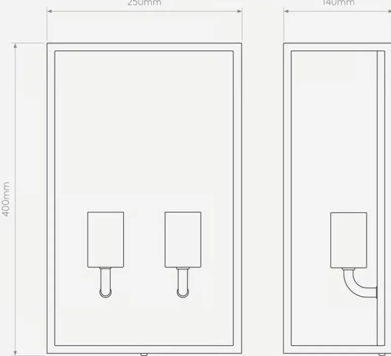Techniquement, la Messina Twin mesure 40 cm de hauteur, 25 cm de largeur et 14 cm de profondeur. Elle nécessite deux ampoules E27 de 12 W maximum chacune.