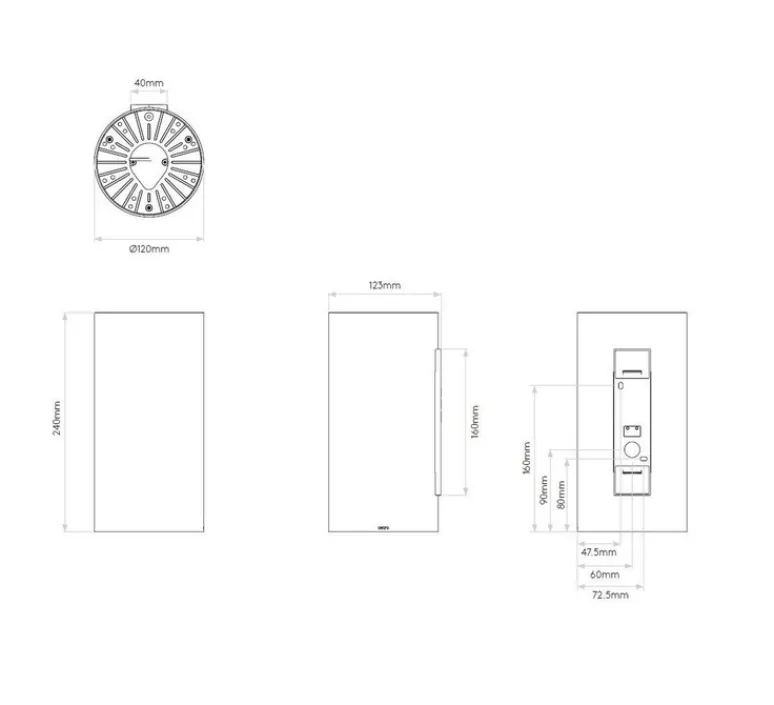 Le module LED intégré d’une puissance de 16,4W diffuse 2700K (un blanc chaud) et 410 lumens. Dimmable et compatible avec les accessoires Casambi. Pas d’interrupteur. IRC de 80 permettant un rendu des couleurs réaliste. Montage mural vertical.