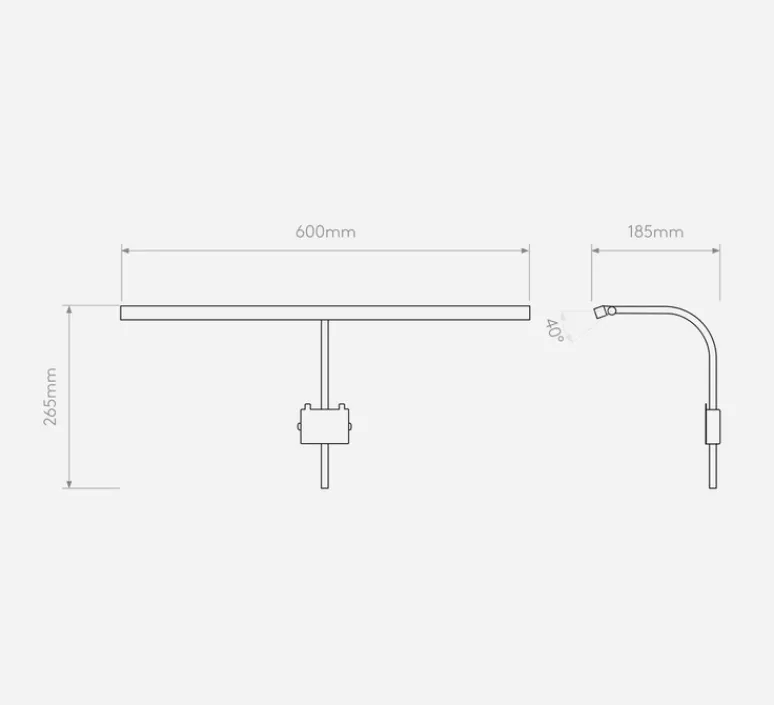 Le luminaire mesure 26,5cm de hauteur, 60cm de largeur et 18,3cm de profondeur. La bande LED est incluse avec une puissance maximale de 8W, une température de couleurs de 2700K et une intensité lumineuse de 214lm. Driver non requis et dimmable. Le câble électrique mesure 1m.