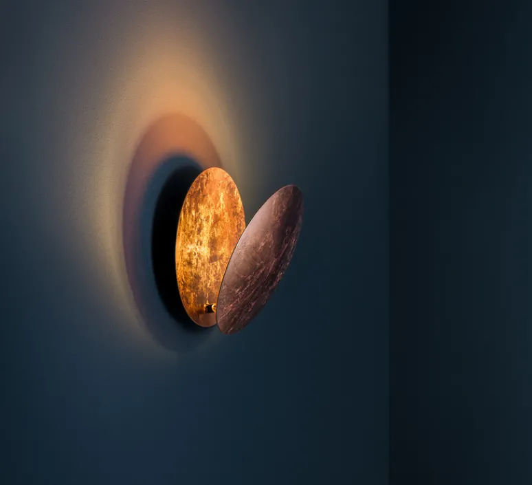 Le design graphique de l’applique Lederam W repose sur des formes sphériques et épurées. Ses disques aux couleurs chaudes diffusent une lumière indirecte douce et accueillante. Vous pouvez orienter le réflecteur pour ajuster l’éclairage selon vos besoins. Placez-la au-dessus d’un canapé ou dans une entrée pour apporter à vos espaces une ambiance lumineuse feutrée et apaisante.
