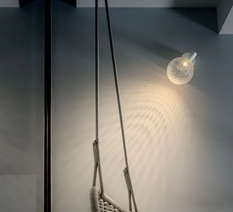 L’applique PAR 18 se distingue par son globe en verre soufflé blanc à la texture irrégulière, rappelant une balle de golf. Cette texture unique, créée par des maîtres verriers bohémiens, diffuse une lumière douce et subtile qui joue avec les ombres pour créer des effets visuels captivants. Parfaite pour un salon, une entrée ou un couloir, elle ajoute une touche moderne et artistique à tout espace.