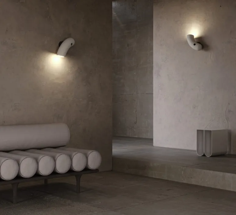 Dans sa version en porcelaine blanche mate, l’applique s’intègre dans son environnement en apportant de doux reflets. Dans un salon ou dans une chambre, Hyphen unit les opposés pour créer de l’harmonie et une atmosphère chaleureuse. Grâce à ses versions droite et gauche, l’applique Hyphen est aussi idéale en tête de lit.
