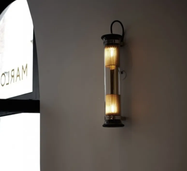 L’applique murale In the Tube en aluminium et inox est composée de deux ampoules, Elle est constituée de tube en verre borosilicate, formée de bouchons en aluminium et silicone, ses colliers son en inox et ses mailles en laiton ou acier. Une vraie prouesse des matières avec un rendu original, inédit et intemporelle.