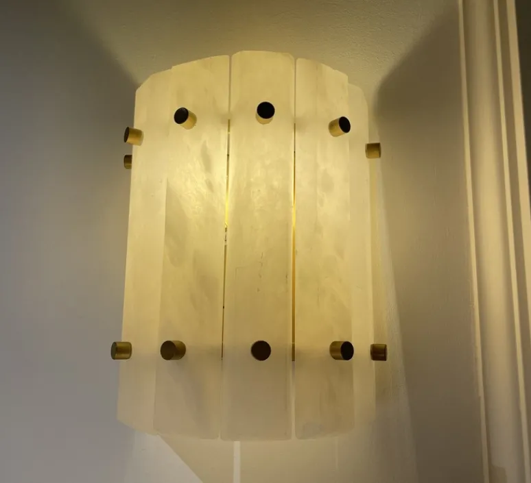 L’albâtre, en tant que matériau naturel, confère à chaque pièce ses propres particularités de couleur, d’opacité et de veinage. Ces variations subtiles offrent à chaque applique une singularité visuelle, créant ainsi un jeu de nuances et de motifs uniques, faisant de chaque pièce une œuvre authentique et distincte.