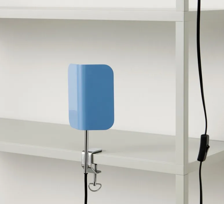 L’applique à pince Apex bleu pastel de la maison Hay est un exemple parfait de design rétro revisité pour s’adapter aux besoins modernes.