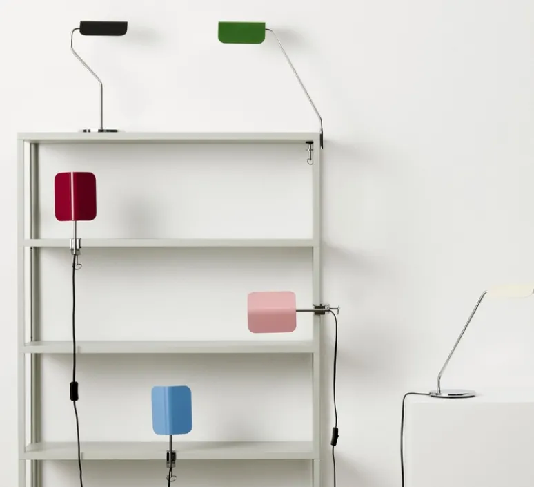 Avec son design cubique et son charme rétro, elle incarne une esthétique intemporelle qui peut se fondre harmonieusement dans divers styles de décoration intérieure tout en apportant une touche de caractère. Elle se compose d’une plaque de métal colorée et courbée pour abriter la source lumineuse. Elle possède une tige rattachée à une pince qui lui permet d’être accrochée là où vous en avez besoin.