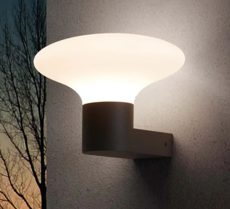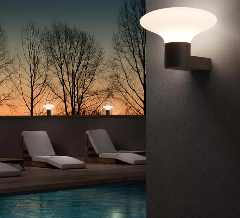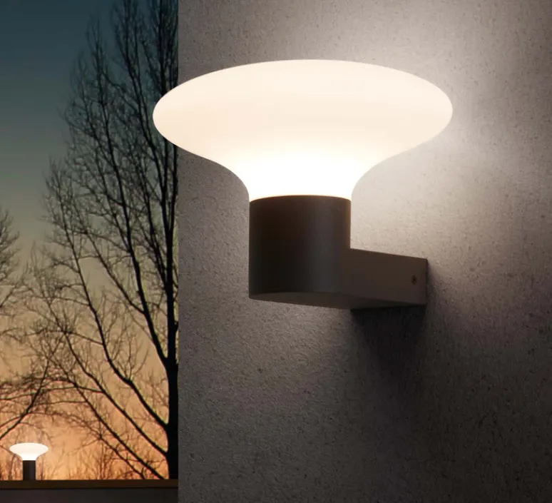 Cette applique moderne en fonte d’aluminium et son diffuseur blanc en plastique opalin, convient à votre terrasse ou jardin, elle est conçue pour l’extérieur (IP44).