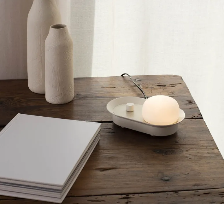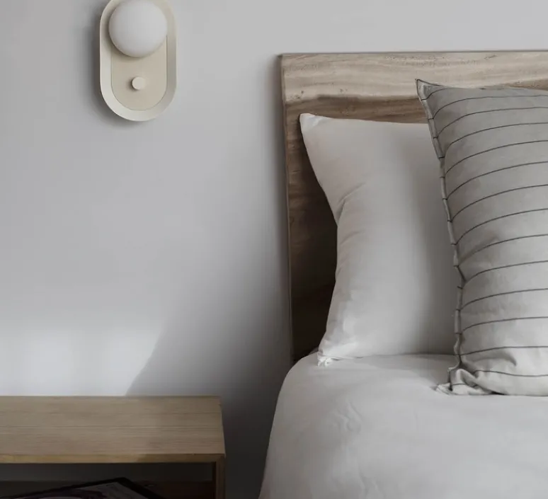 Découvrez l’applique ou lampe à poser Maya, finition beige mat, imaginée par le studio de la maison espagnole Faro.