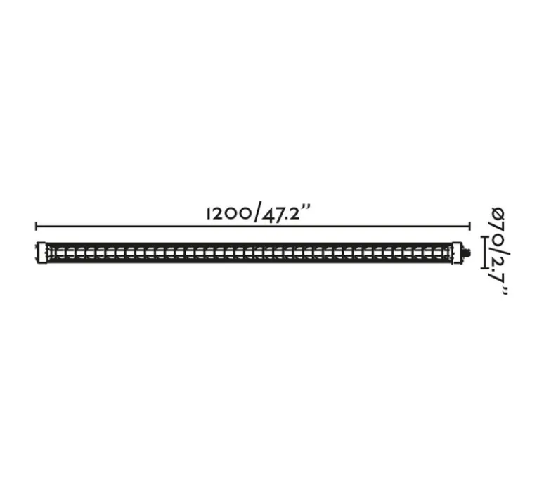 Scuba Louver 120 mesure 60cm de long et a un diamètre de 7cm. Sa source lumineuse est incluse : LED 36W, 2700K, 1510 Lumen. Le modèle existe en deux tailles différentes.