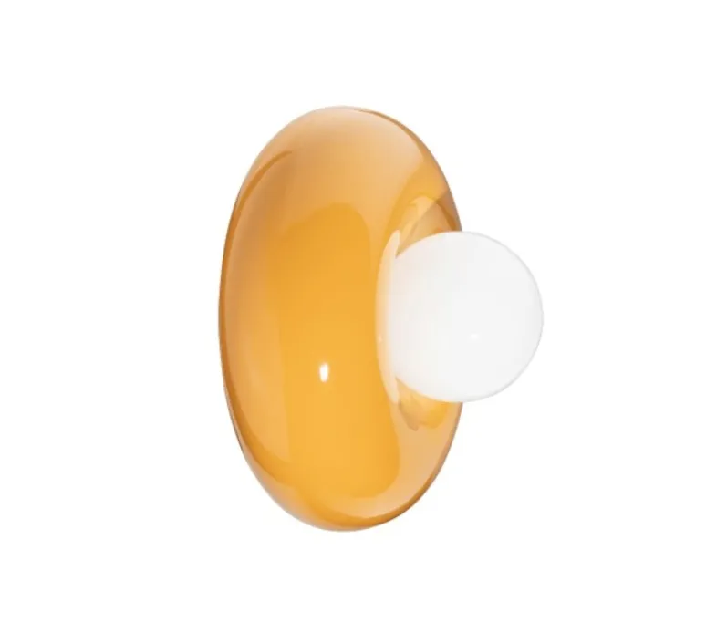 L’applique Bumbum, au jaune chatoyant et gourmand, est conçue avec le savoir-faire italien le plus exquis. Sa forme évoque celle d’un donut gourmand, rappelant instantanément l’univers sucré des bonbons et des sucreries. Cette création lumineuse incarne l’originalité et le réconfort, transformant chaque espace où elle est suspendue en un lieu chaleureux et accueillant. Un diffuseur sphérique en verre est logé au creux du luminaire, comme un coeur lumineux.