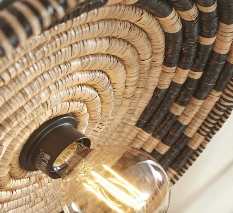 Au design circulaire et naturel, il offre une esthétique chaleureuse et épurée. Fabriquée à partir de matériaux durables, cette applique incarne un équilibre entre artisanat et respect de l’environnement.