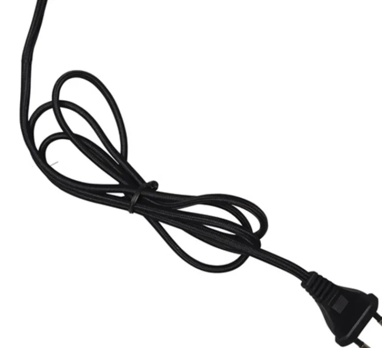 Cette lampe mesure 38cm de hauteur et 29cm de profondeur. Un câble en textile noir, mesurant 2 mètres, est fourni.