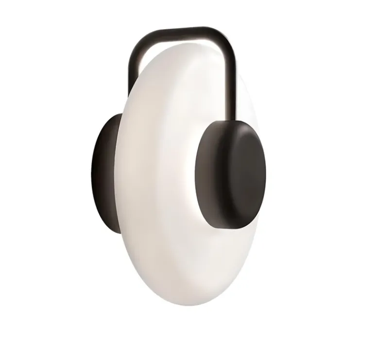 Sa structure en métal peint noir dessine une ligne discrète mais expressive qui s’intègre avec justesse sur tous types de murs. Le diffuseur en verre opalin offre une lumière douce, tandis que la forme circulaire de l’applique crée un relief subtil de lumière et d’ombre. Tratto se pose seule comme point d’accent ou se multiplie pour composer un rythme visuel décoratif dans un couloir ou un salon.