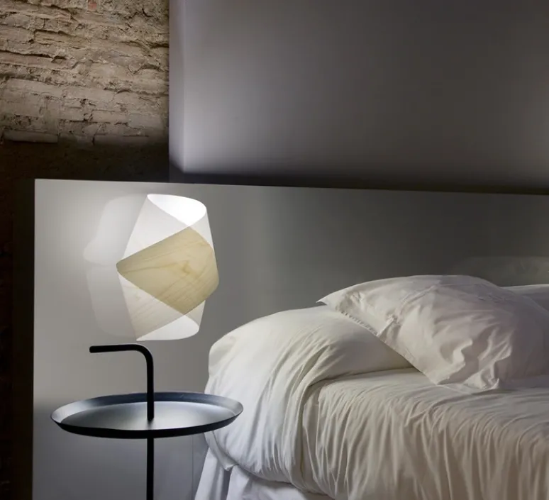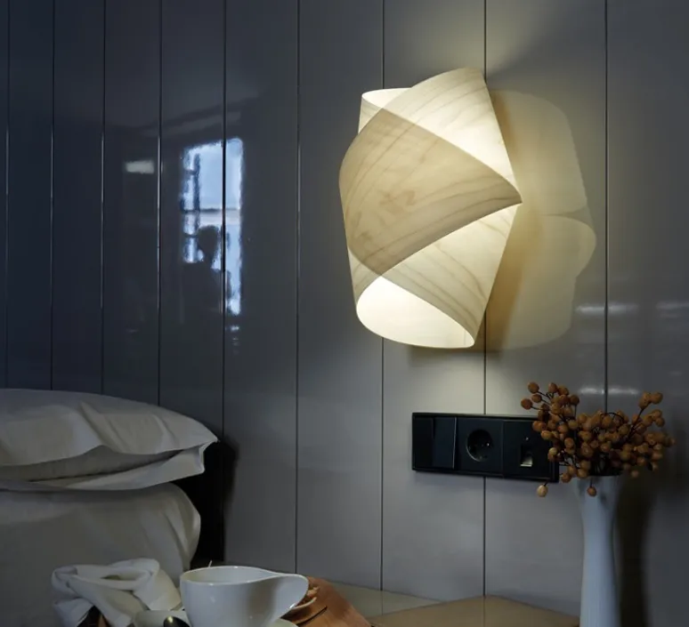 La lampe porte bien son nom, les couches de bois courbé et assemblées à la main dans les ateliers de Valence se replient sur elles même en laissant des ouvertures aux extrémités. Un jeu de lumière qui s’intègre parfaitement dans une chambre, un couloir ou un salon.