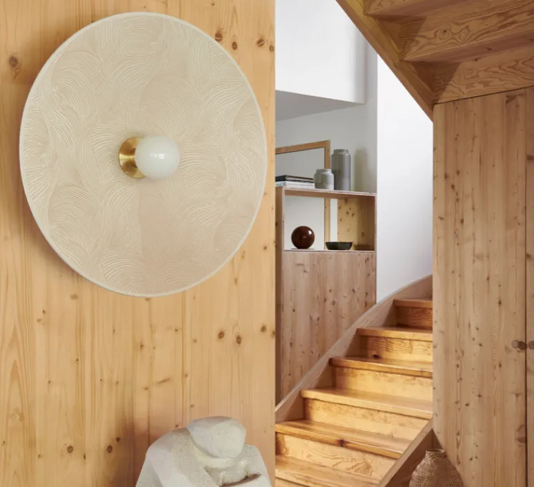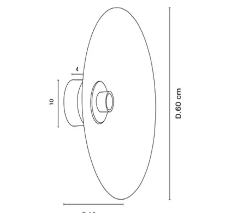 Cette applique est équipée d’une patère murale en métal peint finition sablée et adaptable DCL. Ses dimensions sont de 60cm de diamètre et de 12cm de profondeur.
