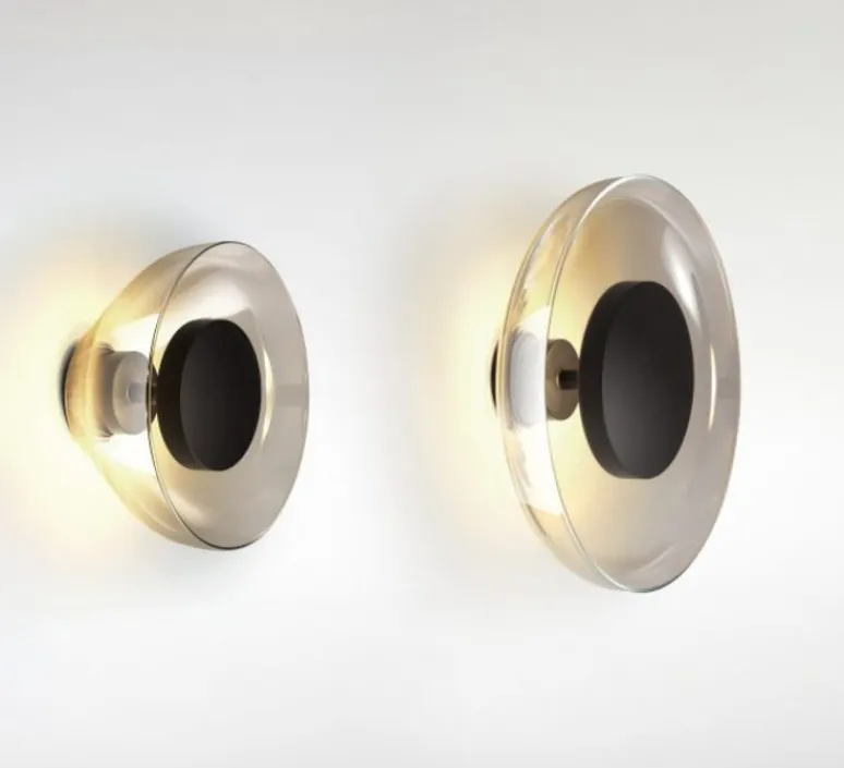 Réalisée en verre soufflé, Son design moderne a été inspiré par des carafes traditionnelles. Cette lampe apporte une touche de lumière sur un mur grâce à son diffuseur translucide en verre transparent qui permet d’obtenir un halo lumineux. Cette lumière douce et indirect est parfaites pour les éclairages d’ambiances. Le verre de son abat-jour permet à la lumière de baigner le mur et crée un effet lumineux sans dureté, tout en générant un point d’intérêt dans l’espace.