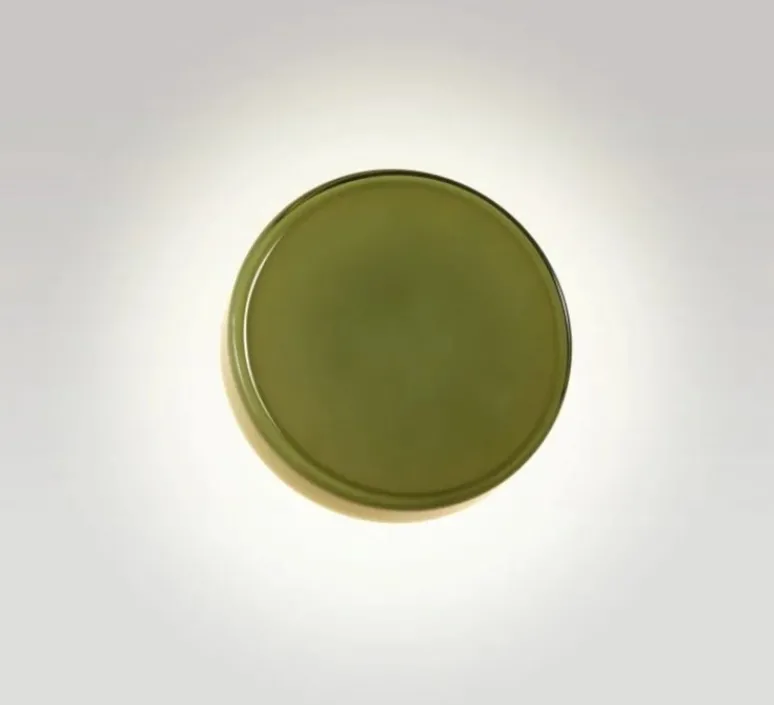 Son design circulaire et sa finition verte, associée à un diffuseur en polycarbonate et verre soufflé, lui confèrent une allure rétro et épurée. L’applique projette une lumière douce et chaude sur le mur, créant une ambiance chaleureuse. Idéale pour les espaces intérieurs, elle peut être utilisée dans un salon, un hall d’entrée ou un bureau pour ajouter une touche élégante et discrète à la décoration. Éteinte, elle devient un élément graphique qui valorise le mur.