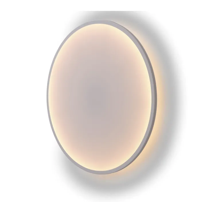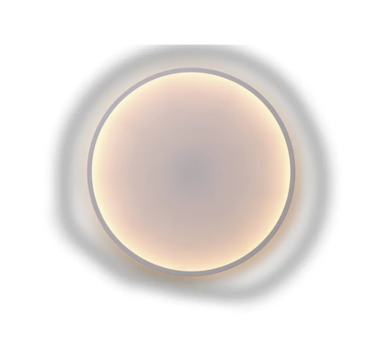 L’applique offre un design simple et épuré avec une surface textile diffusant une lumière dans toutes les directions. La particularité de l’éclairage repose sur un halo lumineux formant un gradient autour du bord vers le centre de l’applique.