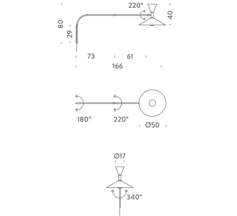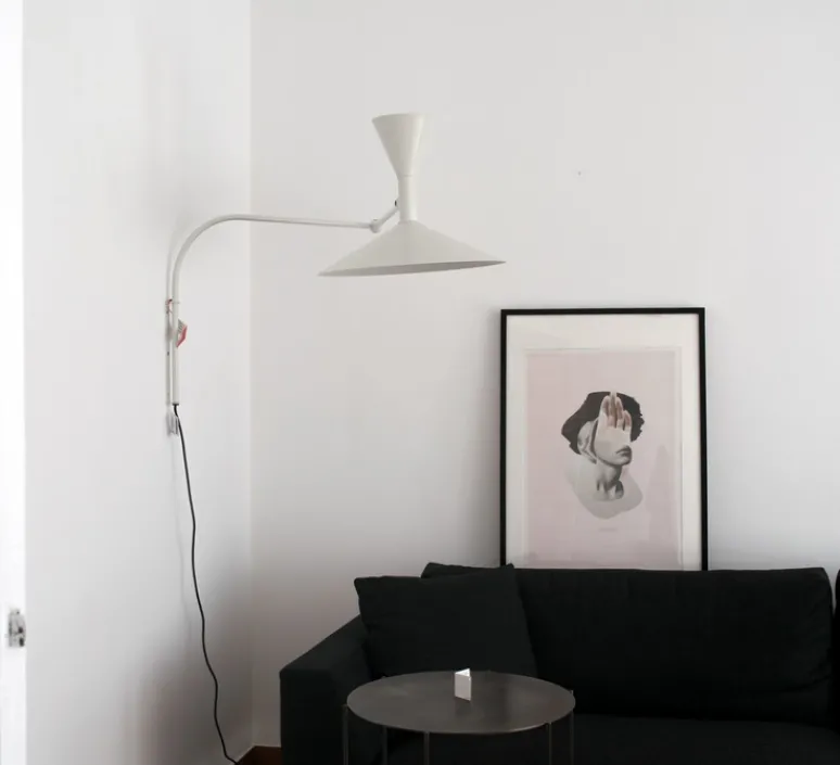 Ces luminaires sont aujourd’hui édités par Nemo Lighting pour le grand public ! Un objet fonctionnel à la fois rétro et moderne fabriqué en aluminium. Inspirée de l’éclairage industriel des années 1950, la lampe de Marseille possède un abat-jour composé de deux cônes de différente taille. Le premier, de 50cm de diamètre, vient se positionner sous le second mesurant quant à lui 17cm de diamètre. Les cônes asymétriques de la lampe sont chacun équipé d’une source lumineuse indépendante afin de créer un éclairage direct ou indirect selon vos envies. L’ensemble du bras est articulable. L’abat-jour orientable peut être déplacé sur 340°.