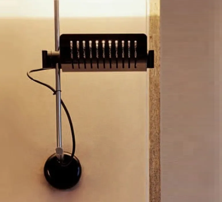 Ce luminaire de coloris noir est la première applique avec une ampoule halogène du designer. Créée pour répondre à un nouveau besoin d’éclairage, la lampe de s’intègre parfaitement dans un salon, une chambre, un couloir. Son style rétro avec le réflecteur en aluminium verni a été maintes fois primé. le réflecteur rotatif et réglable en hauteur. Ampoule incluse.