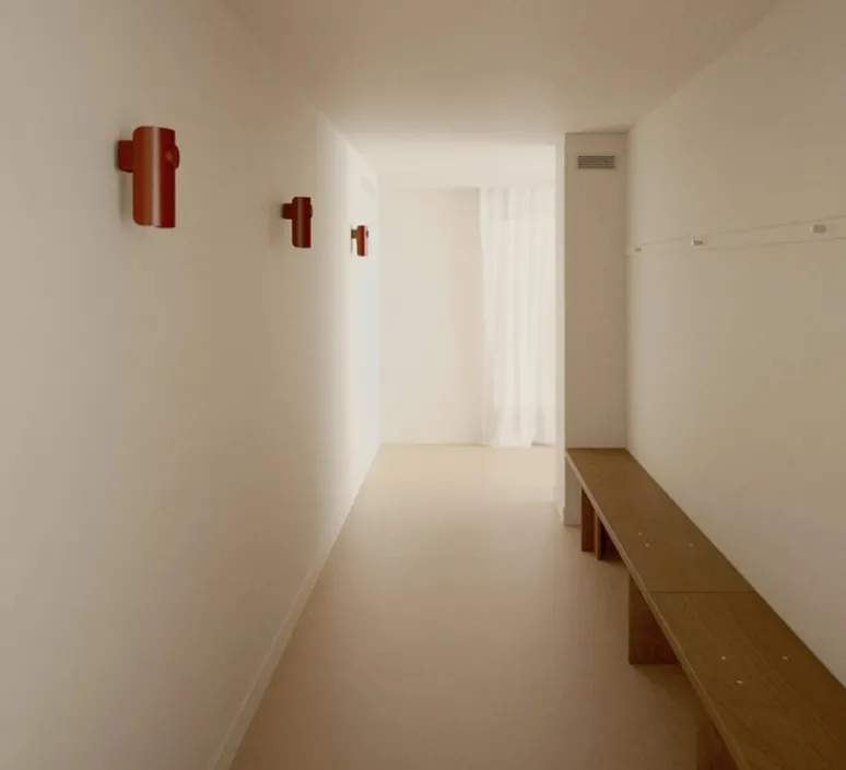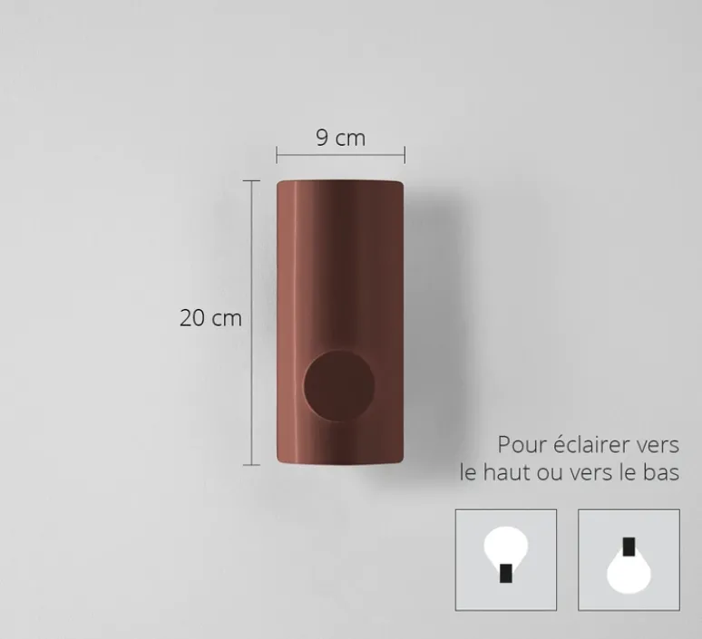 Voici l’applique murale U1-L rouge brique de la maison française Owen dessinée et conçue en France par le studio Nocc en 2022.