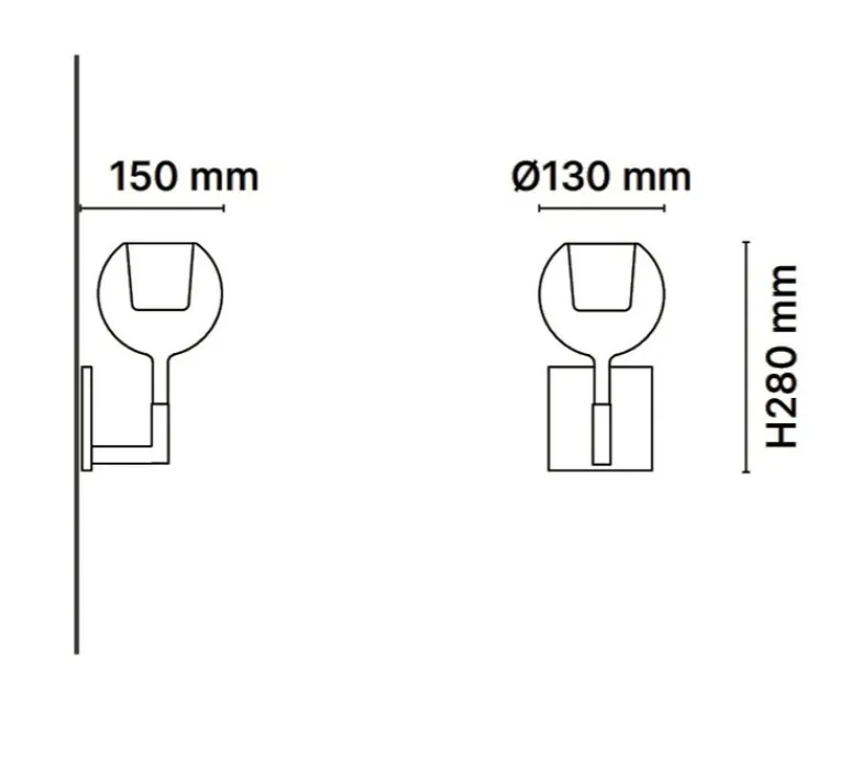 La Glo Mini possède un diffuseur de 13 cm de diamètre, une hauteur totale de 28 cm et une profondeur de 28 cm. Équipée d’un câble avec interrupteur. L’ampoule LED G9 d’une puissance de 4W n’est pas fournie mais est recommandée pour le bon fonctionnement du luminaire. Non dimmable.