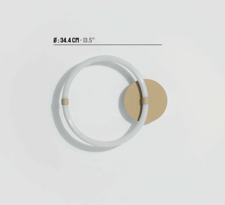 La lampe O mesure 38cm de hauteur, 42cm de largeur et 7cm de profondeur. L’ampoule LED est intégrée avec une puissance de 7.6W, 660lm et 2700K. Driver non requis, l’applique murale est dimmable et offre une diffusion lumineuse à 360°. L’indice de protection est IP20, autrement dit, l’applique murale ne s’installe qu’en intérieur uniquement.