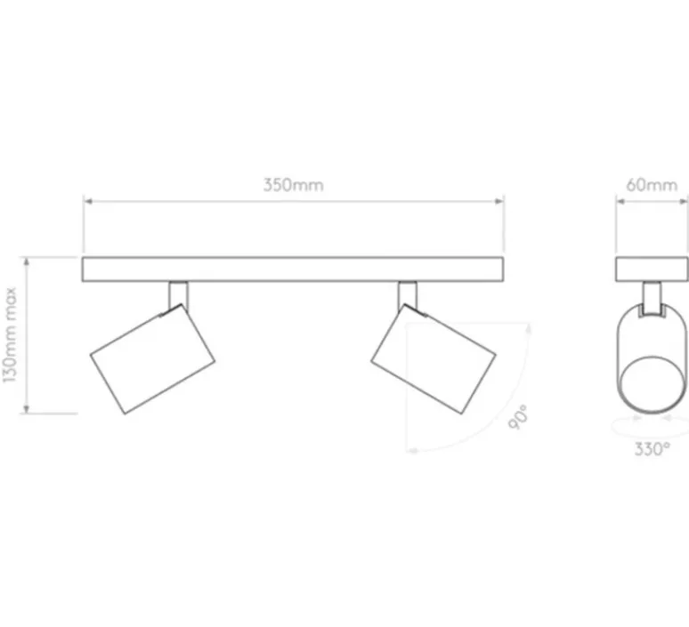 Ce luminaire en aluminium à la finition bronze est équipé de 2 douilles GU10 non incluses. Choisissez la température et l’intensité de lumière que vous souhaitez ! Nous vous préconisons des ampoules classqiues max 50W ou des ampoules LED max 6W.
