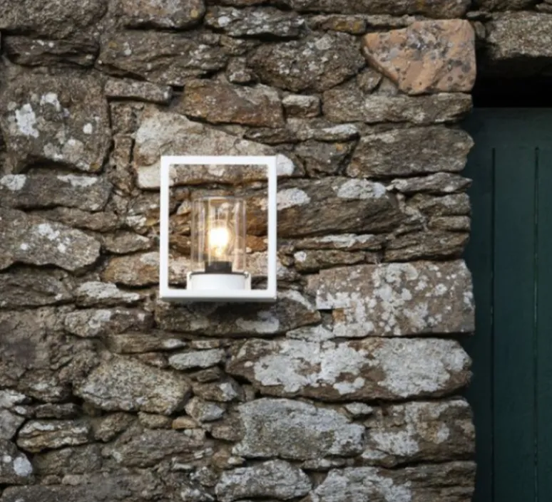 Esthétiquement, l’applique d’extérieur Hugy N° 1 présente une forme cubique graphique, avec un verre clair teinté et une finition blanc pur qui lui confère une allure moderne et originale. Pour un effet décoratif saisissant, installez-la le long d’un mur ou à l’entrée de votre jardin, créant ainsi une ambiance lumineuse et accueillante dans votre espace extérieur.