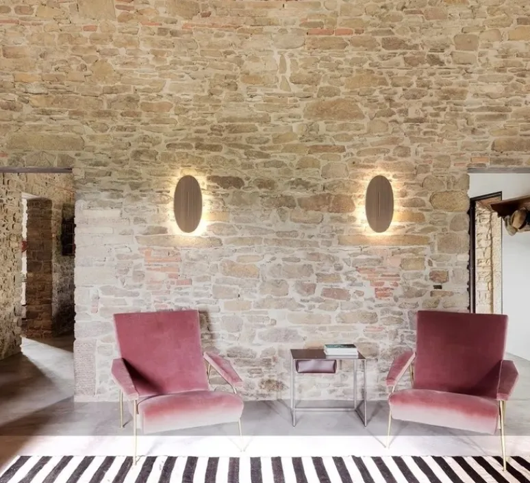 La gamme Totem & Tabù est une gamme d’appliques à la forme ovale qui éclaire les parois. La lumière est transmise par des diodes électroluminescentes qui se trouvent à l’arrière de l’applique et qui diffusent la lumière autour de l’applique et sur le mur.