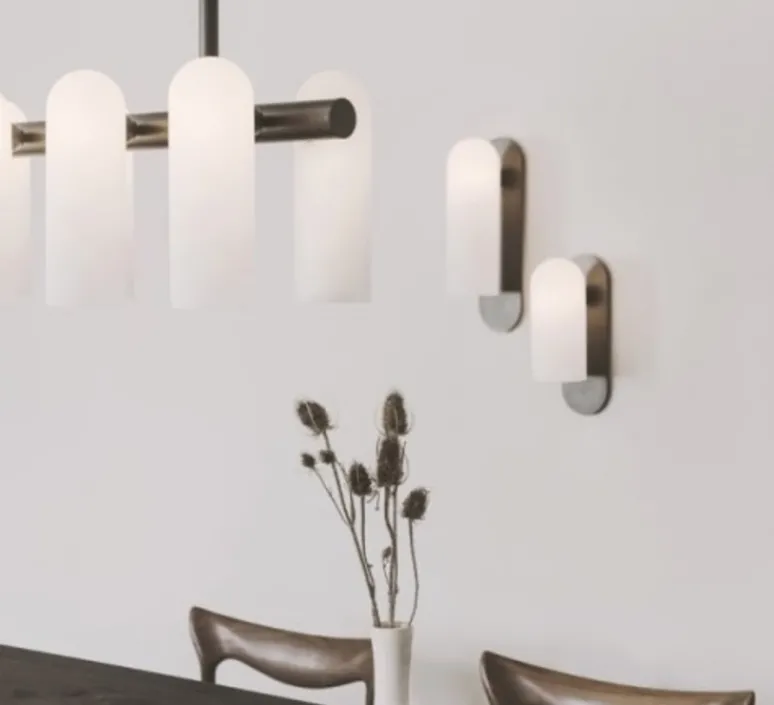 Odyssey est une applique murale composée d’une base en laiton ovoïde et d’un abat-jour en forme de cloche. Odyssey diffuse une lumière sereine vers le bas, et apporte une touche de simplicité intemporelle et élégante, qu’elle soit installée sur le mur d’un salon, d’un couloir ou d’une chambre.