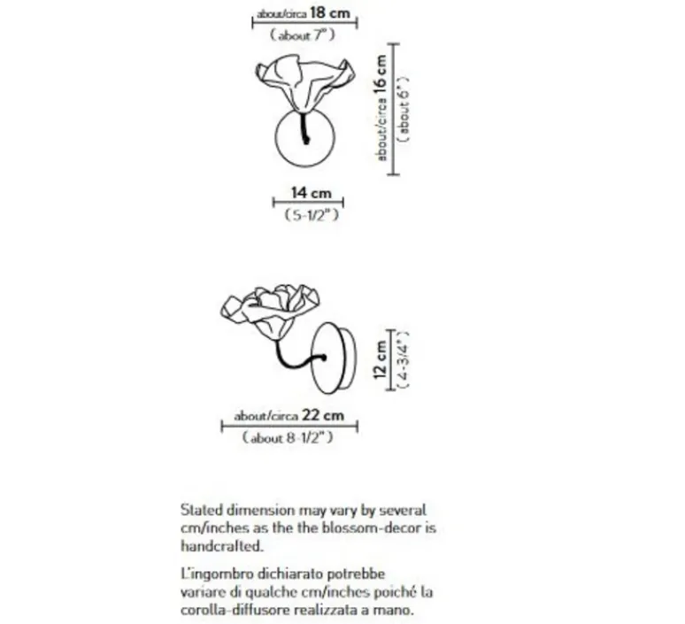 LaFleur mesure 16 cm de hauteur, 18 cm de long et 22 cm de profondeur. Elle est équipée d’une LED G4 dimmable de 3W difussant 3000K et 450lm.