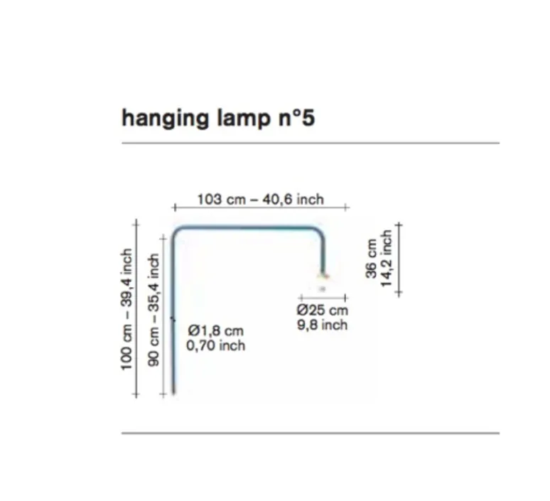 L’applique mesure 100cm de haut sur 103cm de long. La partie fixée au mur est de 90cm. Le diamètre de l’abat-jour est de 25cm. L’ampoule E27 n’est pas fournie. La longueur du câble est de 2m.