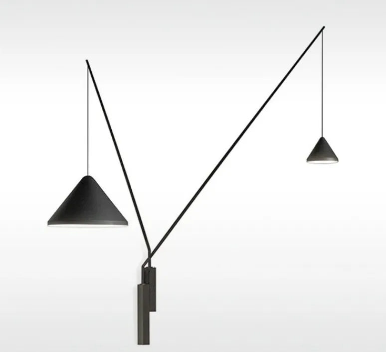 Avec ses deux tiges en fibre de carbone terminées par un abat-jour, l’applique North s’élancent du support mural. La source lumineuse et le socle fixé au mur sont éloignés l’un de l’autre générant ainsi un effet lumineux étonnant.