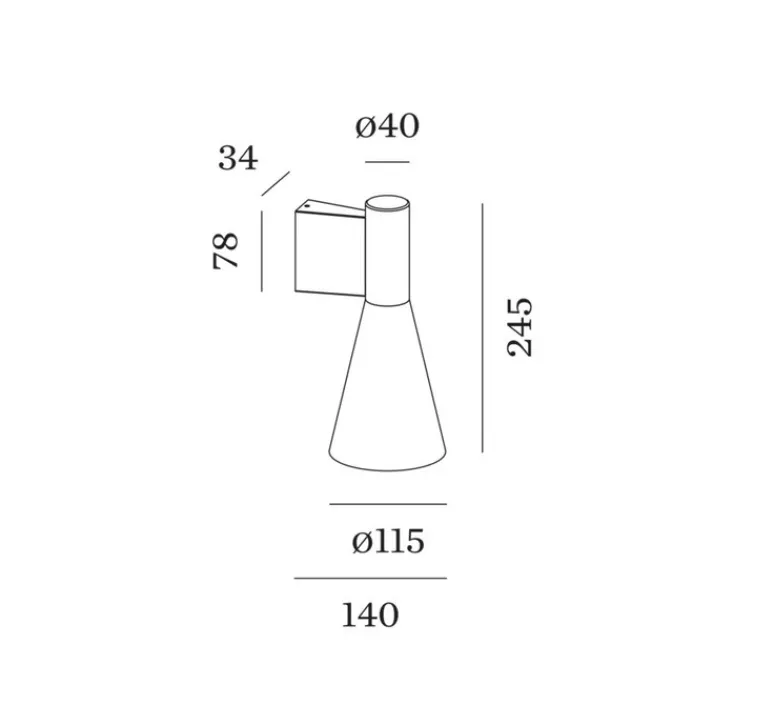 L’applique mesure 11,5 cm de diamètre et 24,5 cm de hauteur. L’ampoule n’est pas incluse. Nous recommandons une ampoule GU10 12W max.