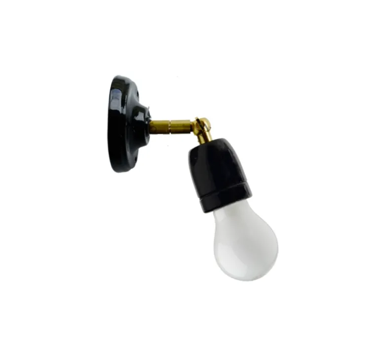 Cette applique et douille en porcelaine noire est vendue sans ampoule. La base en porcelaine mesure 9,5cm x 1cm. Une ampoule E27 à filament, max 80W, 220V est recommandée.