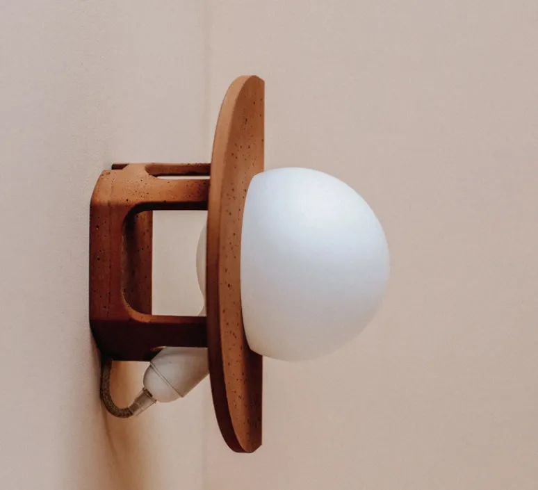 Signée Marie-Cerise Blanc, cette applique entièrement conçue à la main est réalisée en béton haute performance et est teintée dans la masse.