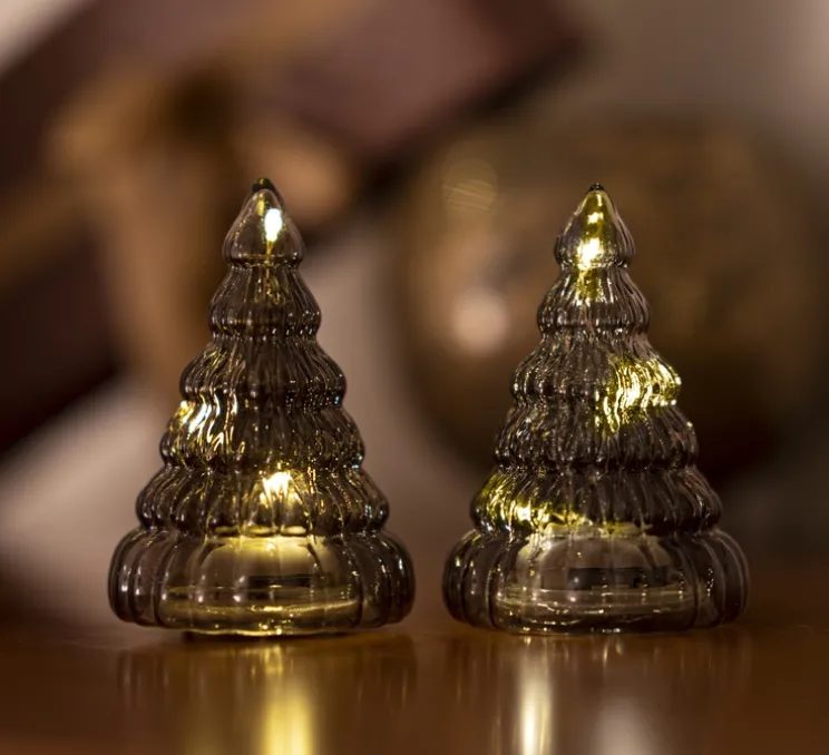 Le sapin de Noël classique a été réimaginé dans cet ensemble Lucy. L’ornement élégant est fait de verre soufflé à la main et abrite des lumières LED chaudes qui se reflètent doucement. Associez cet ensemble ensemble ensemble ou séparément, et ajoutez une touche moderne à votre décoration de Noël.