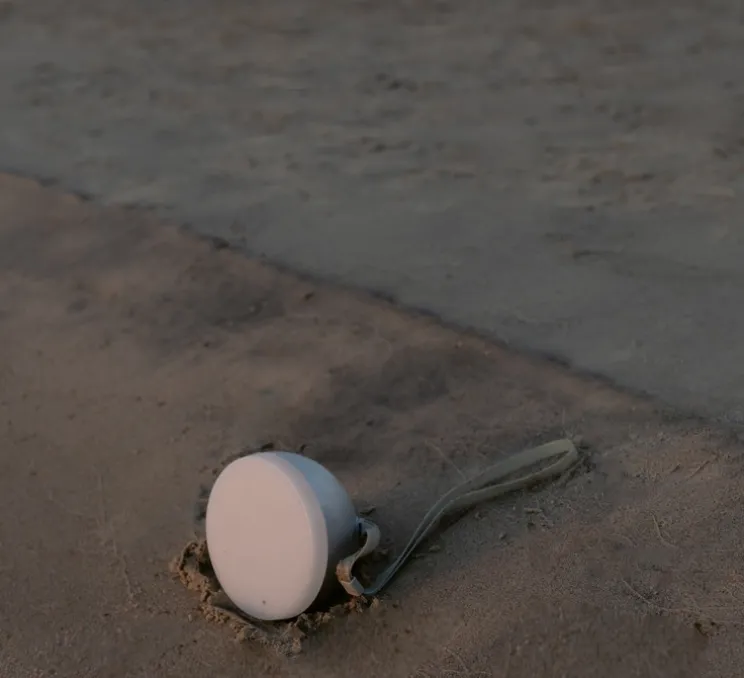Découvrez la baladeuse d’extérieur Sphere Adventure gris chaud signée du Studio New Works.