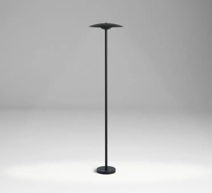 Cette borne créée par Joan Gasper pour la maison Marset fait référence à un disque de lumière extrêmement léger et rend hommage aux tambours de Ginger Baker de Cream, le groupe de rock des années 1960.