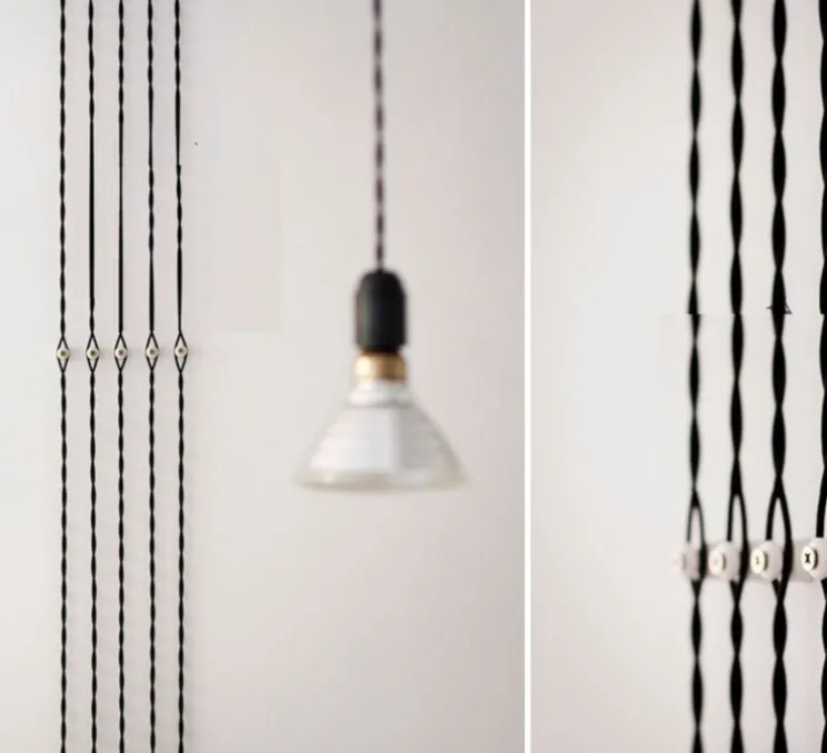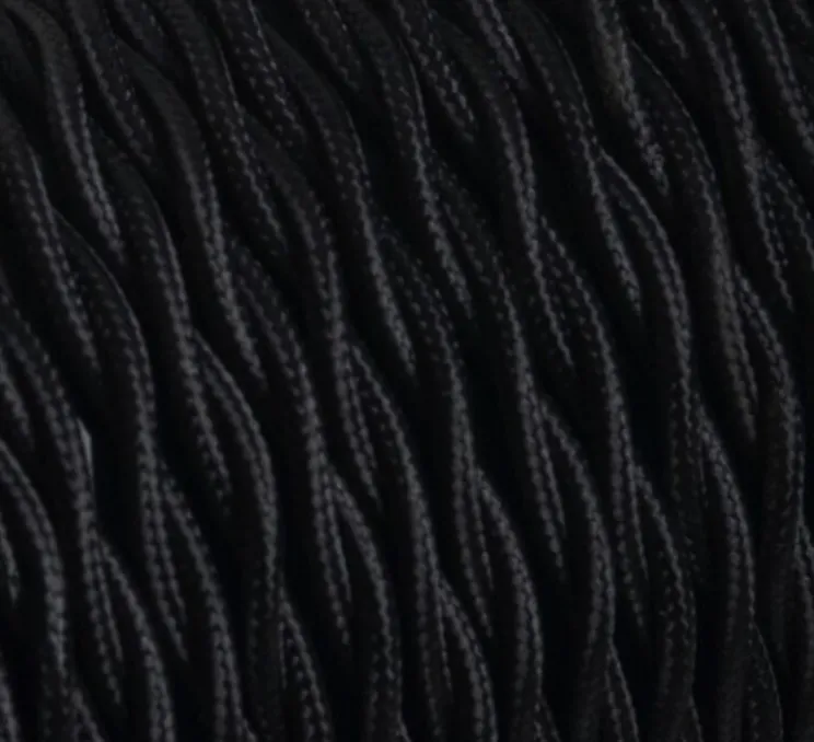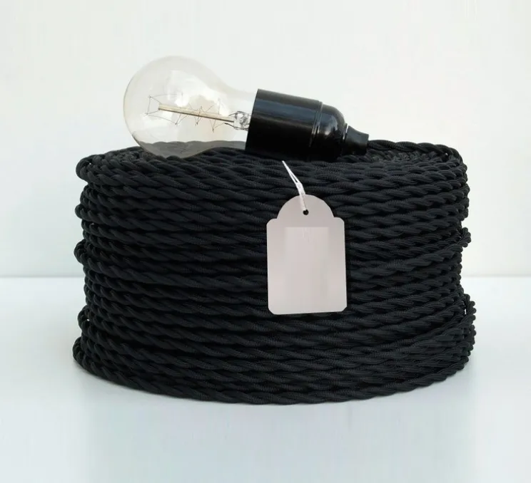 Une gaine textile tressée à l’ancienne recouvre le câble.
