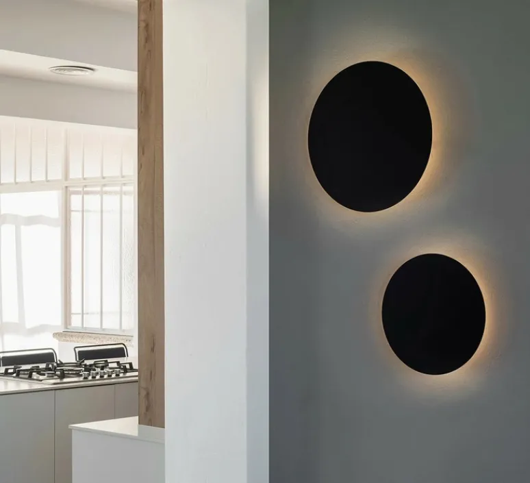 D’un point de vue esthétique, l’applique murale Board 450 présente un design circulaire aux lignes épurées, réalisé en acier et en ardoise. Sa couleur noire lui confère une allure moderne, s’intégrant harmonieusement dans tous les types d’intérieur. Ses dimensions généreuses, avec un diamètre de 45 cm et une hauteur de 3 cm, en font un luminaire imposant et captivant.