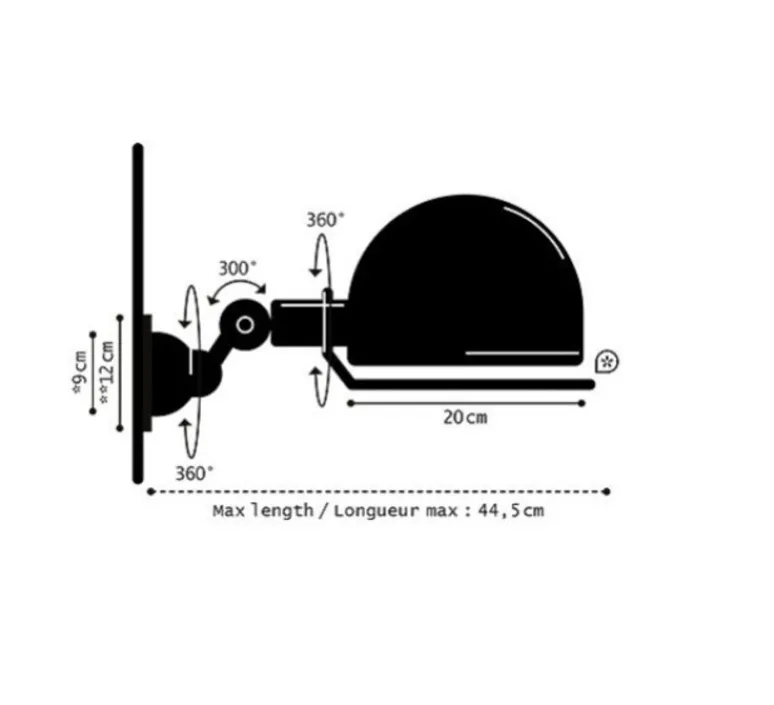 L’ampoule E27 n’est pas fournie avec cette lampe Jieldé.