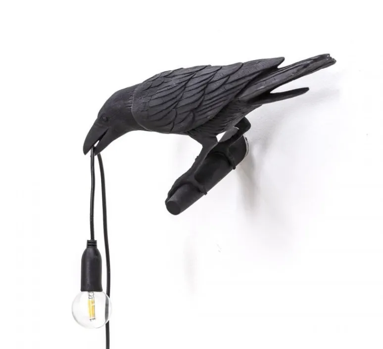 Bird Lamp Looking Left Black Indoor est une applique d’intérieur imaginée par Marcantonio pour la marque italienne Seletti.