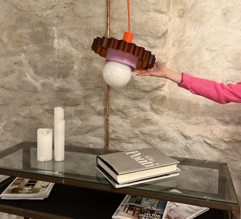 Fabriquée à partir de matériaux recyclés et recyclables comme des bouteilles plastiques ou du bioplastique, la collection Gigi prend soin de la planète. Ici, couleur et modularité se rencontrent pour vous offrir une suspension aux allures rétro. Issues de l’impression 3D, cette lampe est composée de 3 pièces à assembler soi-même pour s’approprier le modèle et le rendre unique. Les pièces sont interchangeables pour permettre plusieurs combinaisons possibles.