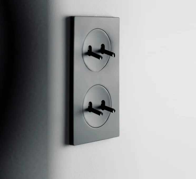 Élégance et modernité se rencontrent avec l’interrupteur double vertical noir mat de la collection DOM de la marque Fontini.